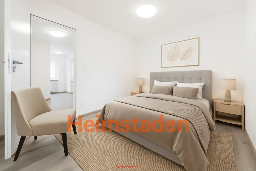 Interiér prošel vkusnou moderní rekonstrukcí. Celým bytem se nesou elegantní plovoucí podlahy v dekoru dřeva, které dodávají prostoru teplo a styl. Kuchyňský kout a vstupní hala jsou doplněny světlou dlažbou, která podtrhuje čistý a vzdušný charakter bytu.