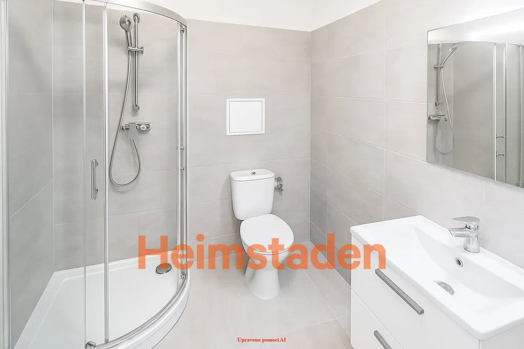 Koupelna v moderním šedém designu se sprchovým koutem a toaletou působí nadčasově a zároveň prakticky. Srdcem bytu je pak kuchyně – vybavená moderní linkou s vestavěnými spotřebiči včetně myčky, kde vaření bude radostí, ne povinností.