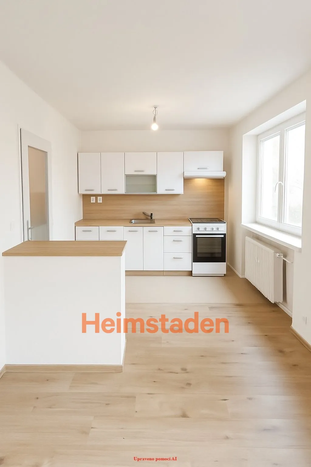 Samotný byt prošel vkusnou rekonstrukcí a působí svěžím, moderním dojmem. V obytné části jsou položeny plovoucí podlahy, zatímco kuchyňský kout a hala jsou doplněny světlou dlažbou, která elegantně ladí s moderní kuchyňskou linkou v bílém dekoru. Nechybí ani elektrický sporák.