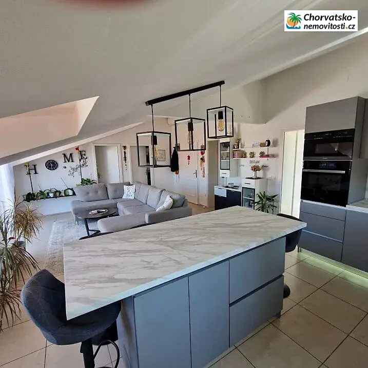 Třípokojový byt o rozloze 81 m2 je na prodej ve výjimečné lokalitě v Novalji, jen minutu od pláže, okres Gaj. Apartmán je klimatizovaný a zařízený.
