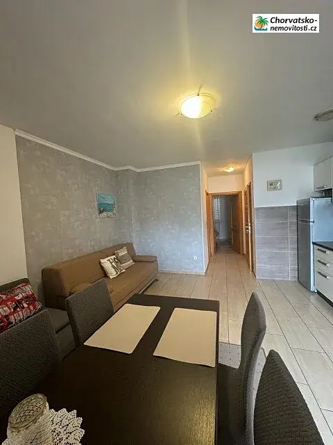 Chorvatsko-Nemovitosti.cz má pro Vás další apartmán s vyjímečným pohledem na hory a moře jen 100m od moře. Apartmán se nachází v prvním patře malého apartmánového domu a má plochu 45m2 a je laděn do tmavě hnědá/bílá. Je kompletně krásně zařízen s parádním výhledem z terasy. Apartmán je umístěn do nenápadného městečka Metajna na ostrově Pag, které je vyjímečné tím, že je klidné a pohodové - má jen 250 stálých obyvatel. Je vhodné pro dovolenou, ale i delší pobyt. Je zasazeno do bílých skal, zeleně a modrou mořskou hladinou. Samozřejmě se do městečka dostanete pohodovou silnicí z pevniny nebo jiných měst ostrova Pag. Ve městě naleznete malý supermarket a restaurace. Náš apartmán má výbornou polohu pro koupání v moři, ale i návštěvu centra městečka nebo výletu do hor. Jedná se prodej druhého apartmánu ve stejném domě. Podrobně o apartmánu:
