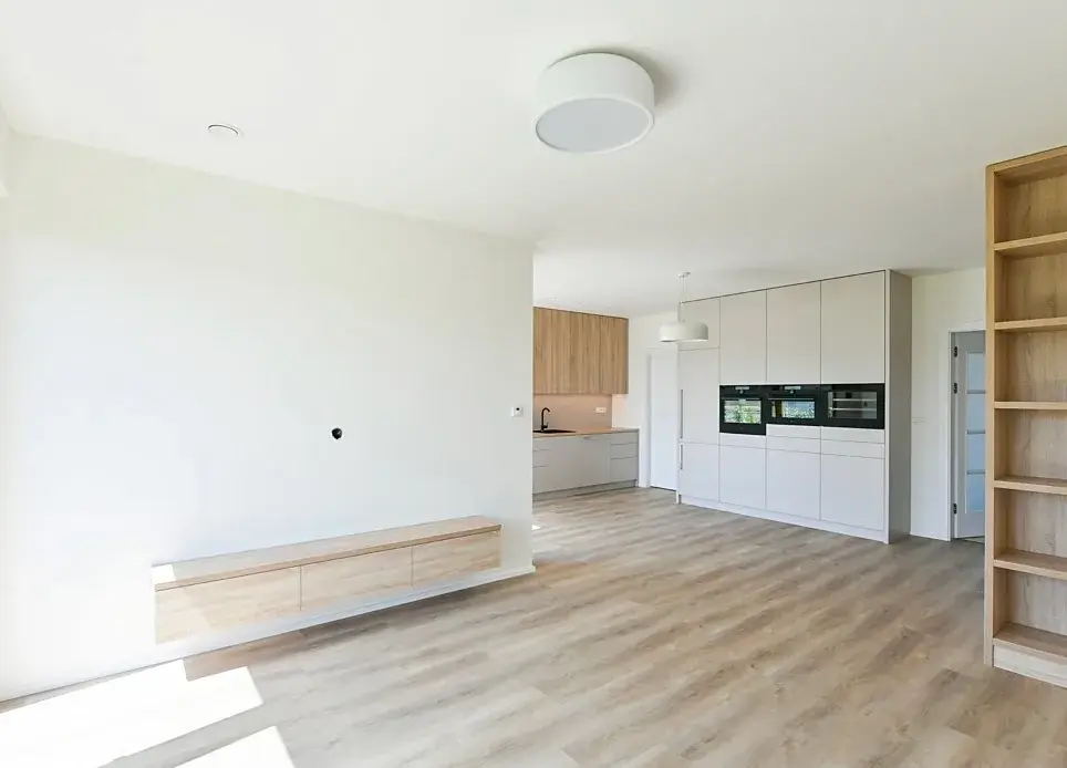 Dominantou přízemí je vzdušný obývací prostor s plně vybavenou designovou kuchyní (38 m2), který plynule navazuje na terasu a upravenou zahradu, čímž přirozeně propojuje interiér s exteriérem. Tento prostor je ideálním místem pro každodenní život i společenská setkání. Kuchyň je vybavena prémiovými spotřebiči značky AEG, včetně indukční varné desky, kombinované trouby, horkovzdušné trouby s pyrolýzou, myčky Bosch a vinotéky, což ocení i náročnější klientela.