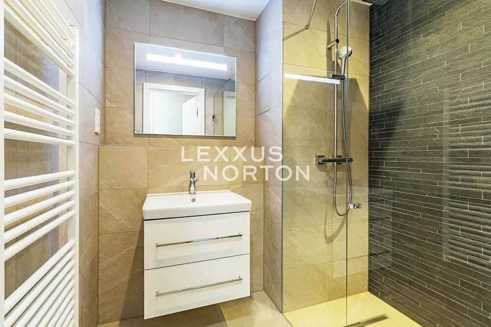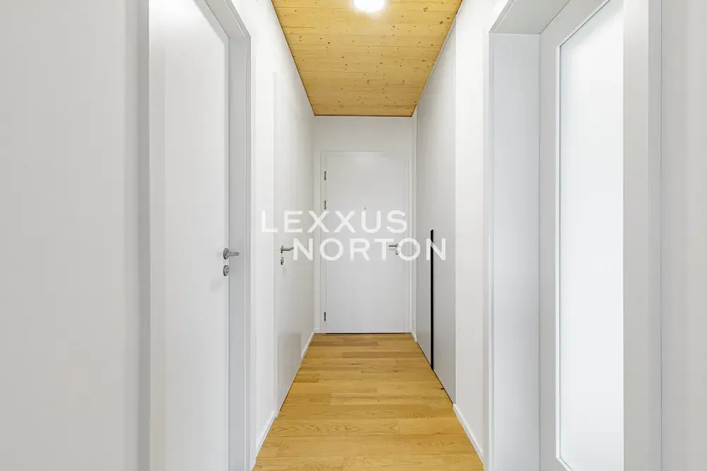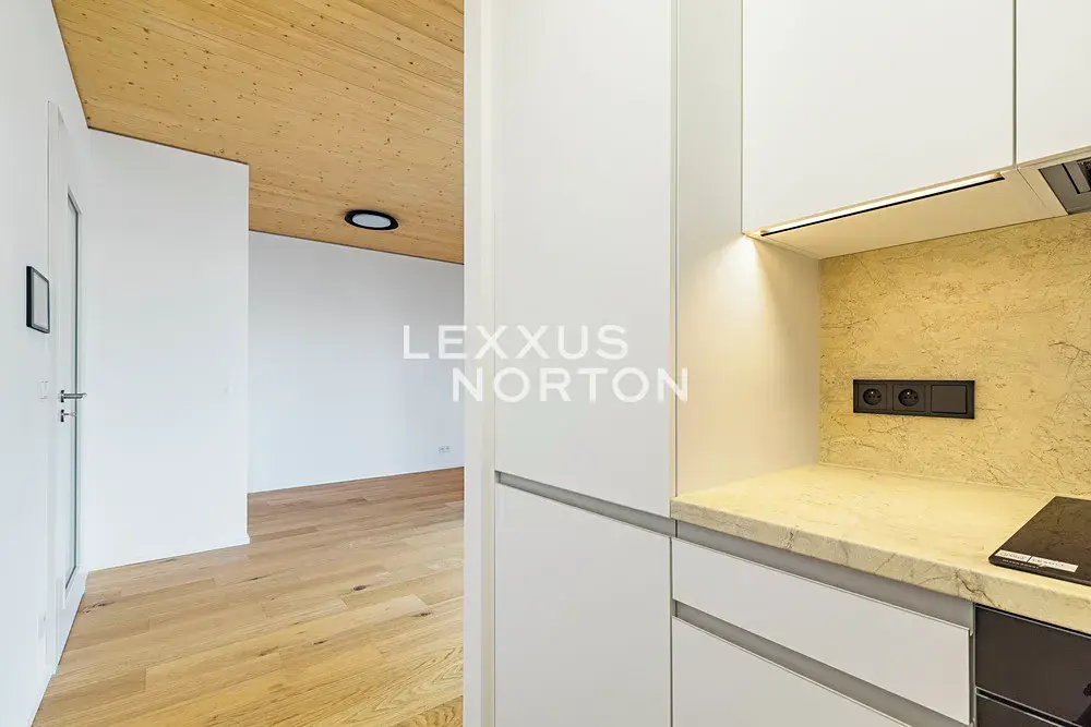 Kuchyňský kout je vybavený indukční varnou deskou, troubou, lednicí s mrazákem, a pračkou. Vstupní chodba a ložnice disponují vestavěnou skříní. Byt dále disponuje moderním smart home systémem Loxone, který umožňuje mimo jiné inteligentní ovládání venkovních žaluzií, regulaci podlahového vytápění a chlazení v každé místnosti či monitorování spotřeby vody a energie.