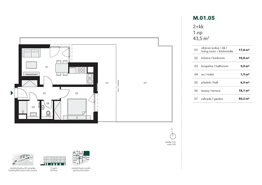 Nabízíme k pronájmu nezařízený, zcela nový, dosud neobývaný moderní byt 2+kk o velikosti 43,5 m² se zahradou 50,2 m², situovaný v přízemí domu v projektu Timber Praha s výtahem. Nemovitost se nachází v krásné lokalitě Prahy 5 - Stodůlky disponující veškerou občanskou vybaveností a výbornou dopravní infrastrukturou.