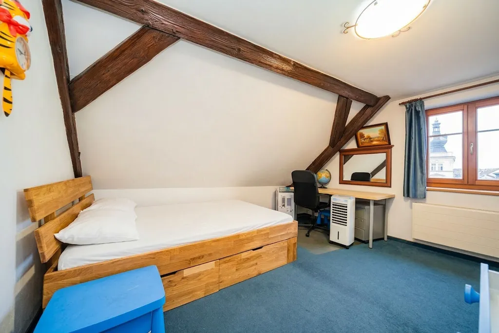 Celý byt působí velmi sympaticky a originálně i díky prvkům půdního prostoru, ve kterém je vybudován. Tato nadstandardní nemovitost umožňuje i propojení bydlení s podnikáním ve vyhledávané lokalitě centra Prahy. Daná lokalita je koneckonců velkou přidanou hodnotou této nabídky. Těsná blízkost obchodů a služeb včetně MHD, metra a vlakového nádraží, snad ani netřeba zmiňovat.