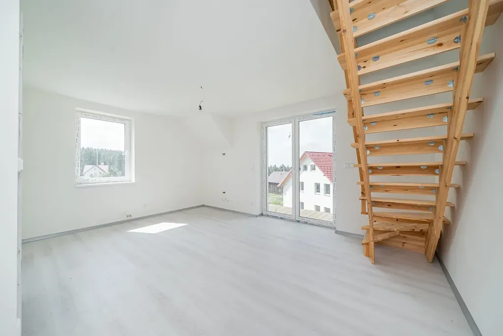 Je mezonetový umístěný v 2.NP a 3.NP a má výměru 92 m². Přístup je po venkovních schodech.