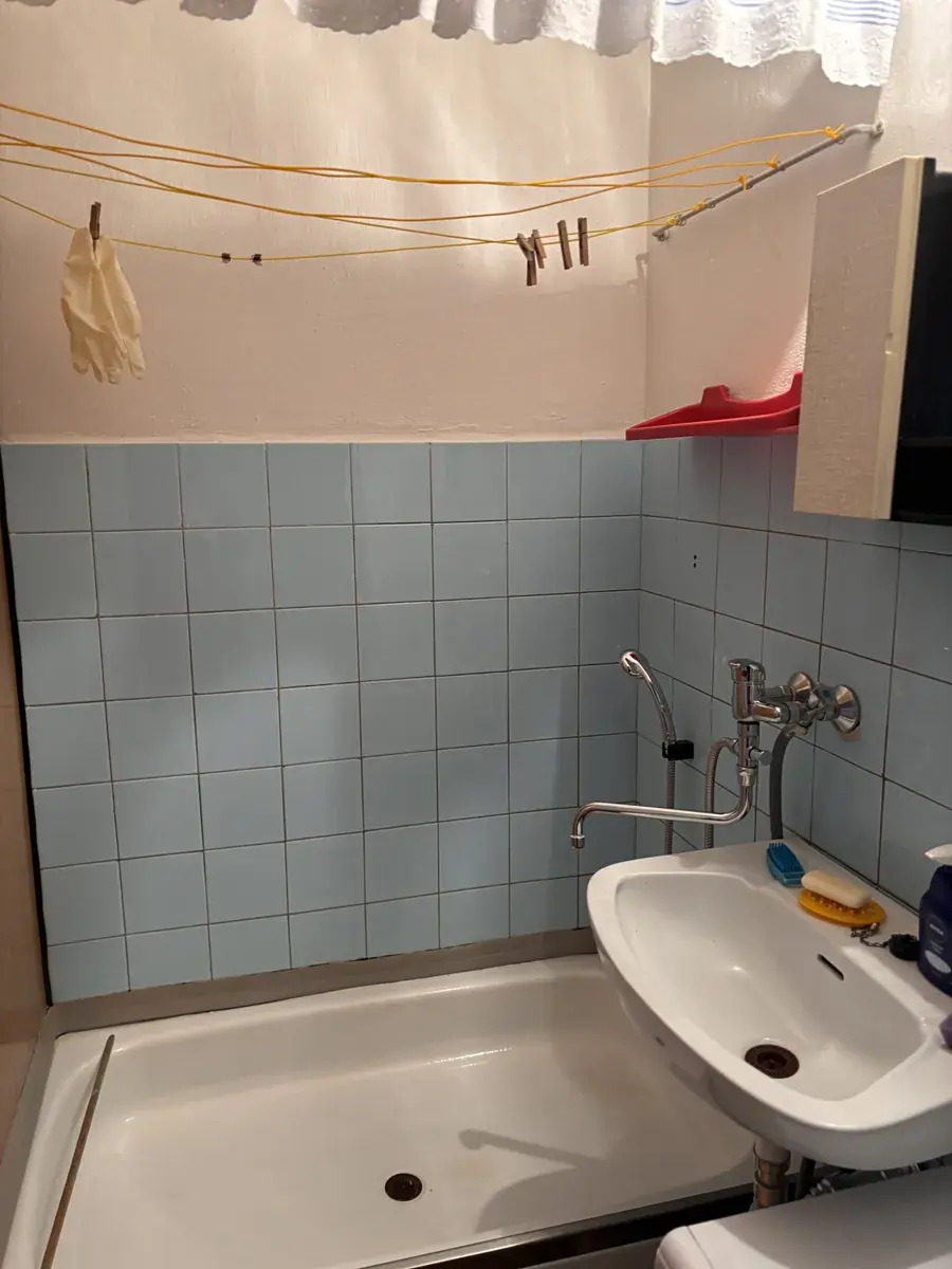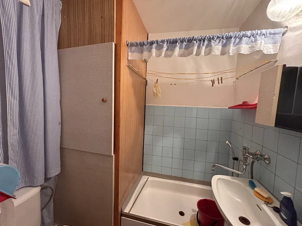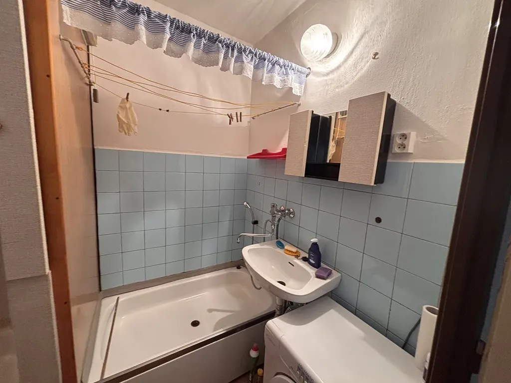 Byt je v původním, ale ve velmi zachovalém stavu. Z prostorné předsíně je vstup do koupelny s WC, velkého pokoje a menší kuchyně. Velký pokoj má 2 dveře a lze byt dispozičně upravit i na 2+1. Koupelna je panelová.