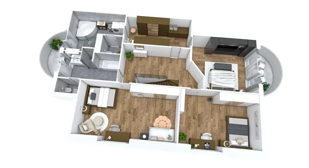 Díky své dispozici se nabízí také možnost jednoduchého rozdělení příčkou, čímž lze získat další plnohodnotný pokoj dle vašich potřeb.
