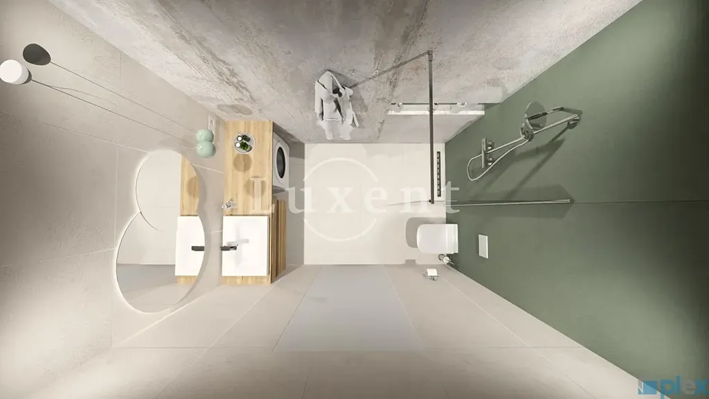 Důraz je kladen i na detail a dlouhodobou hodnotu. Koupelna je řešena v nadčasovém designu s použitím kvalitních materiálů, mikrocementu a značkové sanitární techniky.