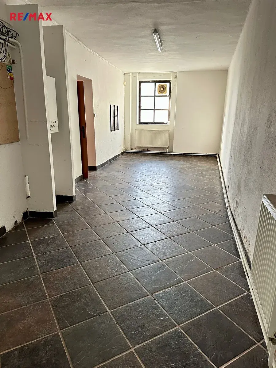 Nabízený obchodní prostor má několik částí: hlavní obchodní prostor, vedlejší prostor s oknem k náměstí, další prostor s oknem do ulice, sociální zázemí.