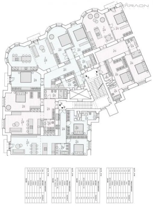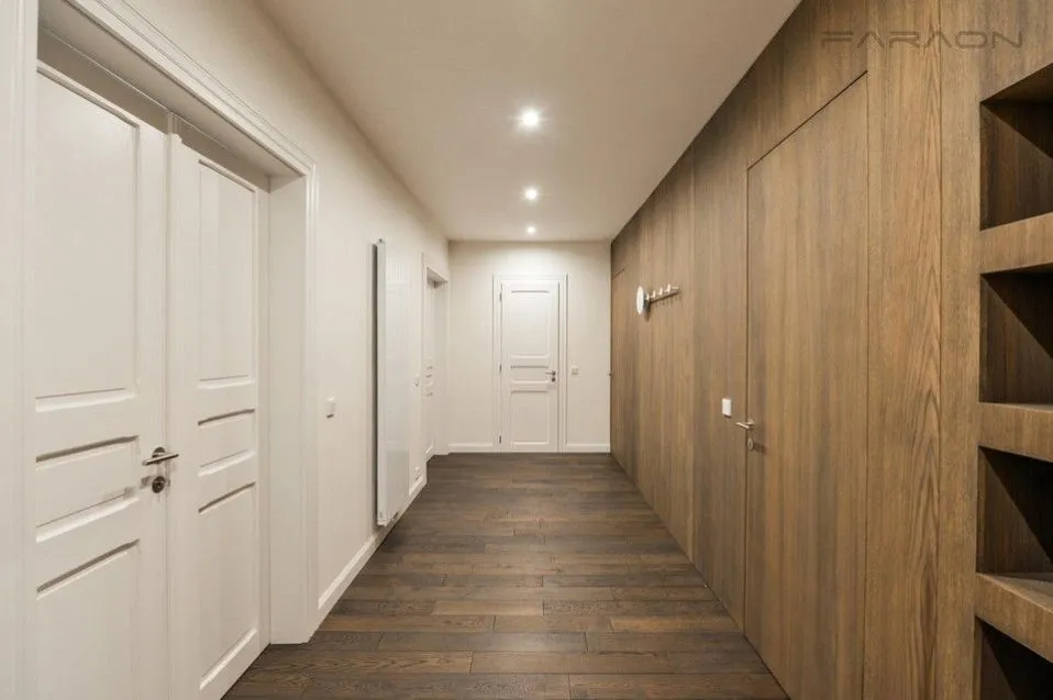 Interiér bytu tvoří otevřený prostor obývacího pokoje s plně vybavenou kuchyní a jídelním prostorem, hlavní ložnice s prostornou šatnou, koupelna, druhá ložnice se šatnou, ložnice orientovaná do klidného upraveného vnitrobloku, další koupelna se sprchovým koutem, vstupní hala se šatními skříněmi, technická místnost.