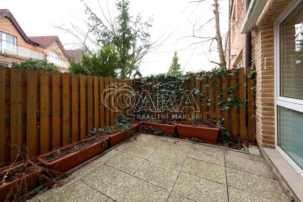 Velkým benefitem bytu je samostatná vytápěná garáž (23,5 m²) s denním světlem, která je přímo propojena s bytem. Tento prostor byl částečně upraven a dnes nabízí chytré rozdělení na garáž a samostatnou pracovnu, která je ideální pro práci z domova, konzultace s klienty nebo kreativní činnost.