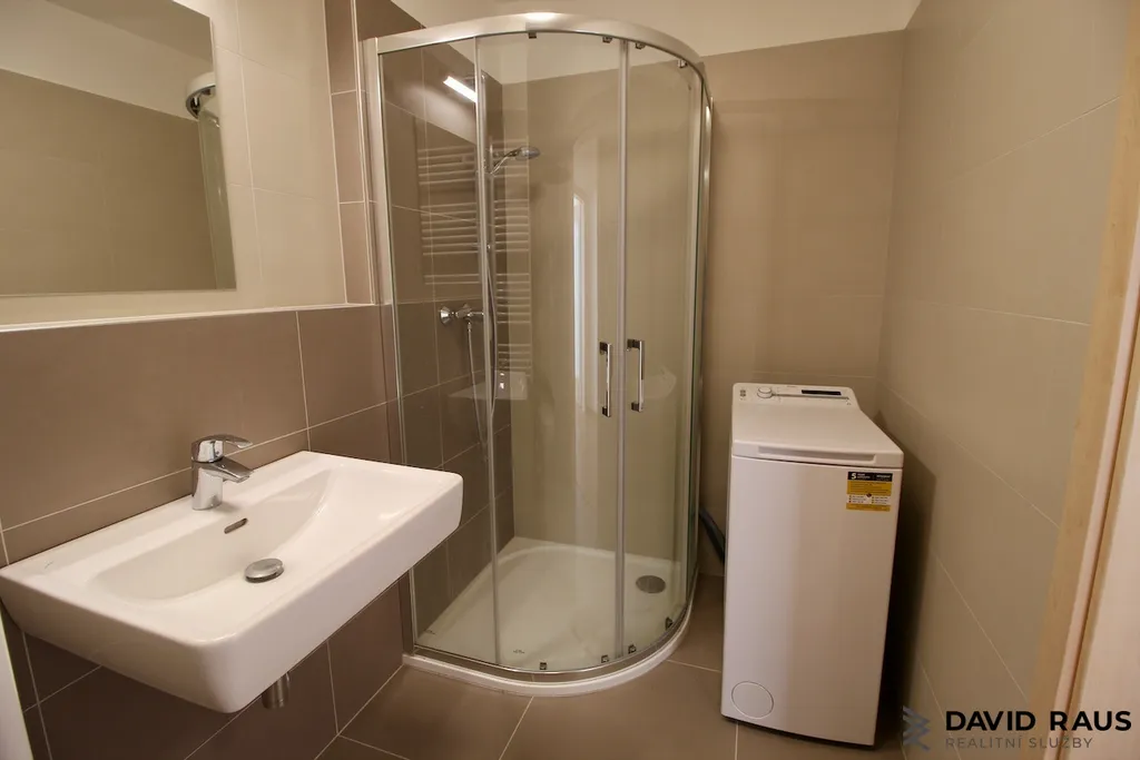 První naše kroky vedou do předsíně (7,68 m²), ze které se přesuneme dále do obývacího pokoje s kuchyňskou linkou (22,65 m²) a vlastním vstupem do prostorné lodžie(5,3 m²), vybavené posuvným stínícím systémem. V obývacím pokoji instalována rekuperační jednotka. V bytě je nová kuchyňská linka včetně kvalitních elektrospotřebičů: sklokeramická varná deska, elektrická trouba, digestoř, mikrovlnná trouba, lednice s mrazákem. Součástí vybavení bytu je rovněž pračka a svítidla. V celém bytě se nachází plovoucí podlaha, mimo koupelny společné s toaletou (3,95 m² ), kde se nachází dlažba.