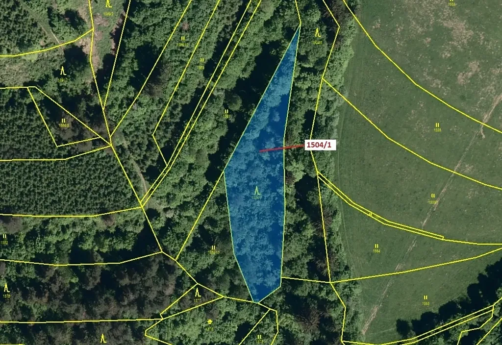 Lesní pozemek o výměře 2626 m2, parcelní číslo 1504/1, podíl 1/1, katastrální území Hovězí, obec Hovězí, obec s rozšířenou působností Vsetín, okres Vsetín, Zlínský kraj.