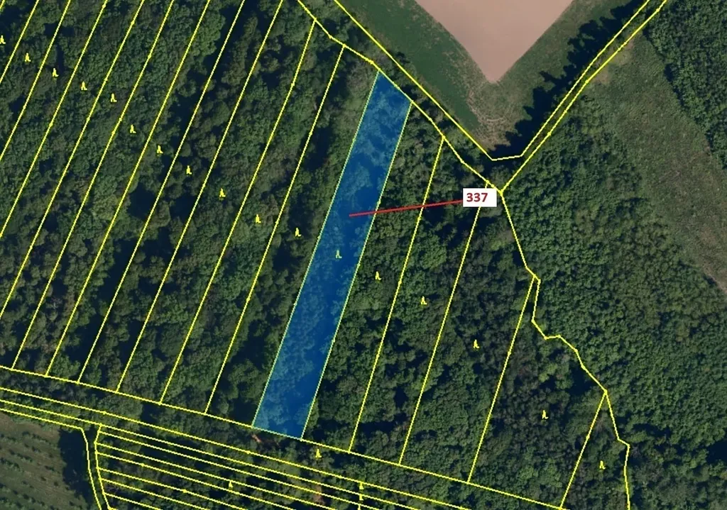 Lesní pozemek o výměře 5 963 m2, parcelní číslo 337, podíl 1/1, katastrální území Hradčany na Moravě, obec Hradčany, obec s rozšířenou působností Přerov, okres Přerov, Olomoucký kraj. Po těžbě.