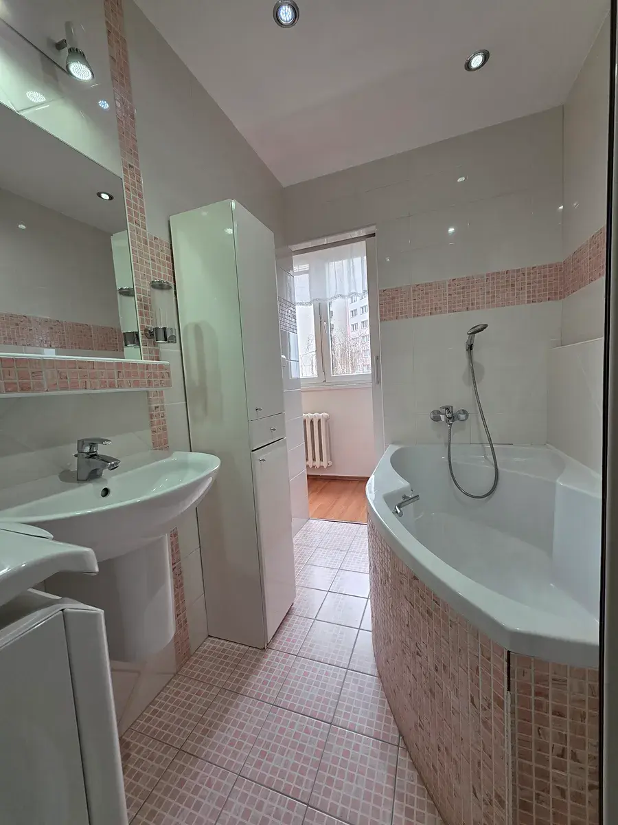 Byt se pronajímá včetně velmi vkusného bytového zařízení, kuchyňská linka je vybavena vestavěnými spotřebiči včetně myčky nádobí, el. varné desky, el. trouby s grilem, ledničky s mrazničkou. V prostorné koupelně, kde je umístěna jak vana, tak sprchový kout, je k dispozici automatická pračka. K dalším přednostem tohoto bytu patří samostatná šatna a prostorná lodžie s krásným výhledem. Měsíční zálohové platby včetně elektřiny jsou nastaveny adekvátně a činí částku 4 275 Kč.