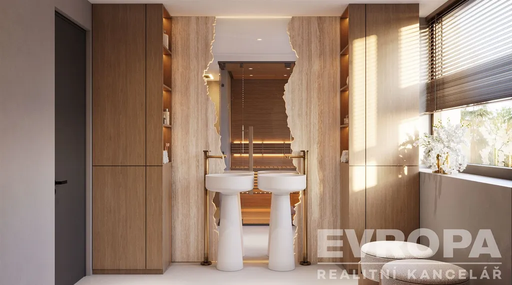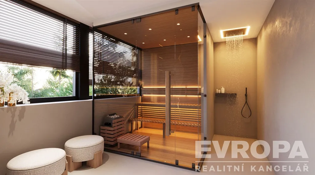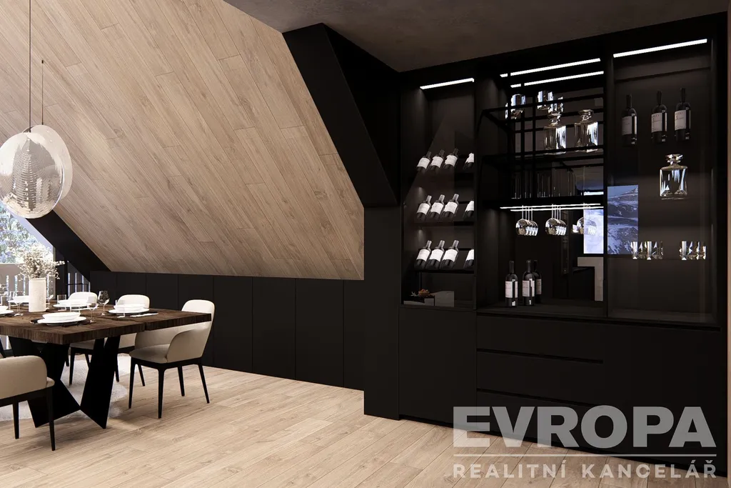 Dispozice zahrnuje velkorysý obývací prostor s vysokými stropy, tři samostatné ložnice, tři koupelny s toaletami, šatnu a privátní saunu s unikátním výhledem na sjezdovky. Z obývacího pokoje se otevírá působivé panorama Krkonoše, které podtrhuje jedinečnost celé nemovitosti. Atmosféru hor umocní také klasický krb, jenž se stane dominantou obytného prostoru.