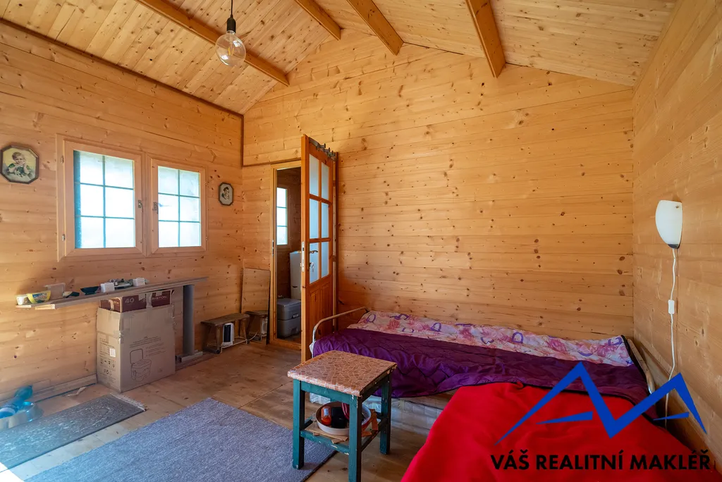 Pozemek je upraven, zatravněn a k dispozici nabízí dvě dřevěné zánovní chatky, napojené na elektrický proud a vodu ze studny.
