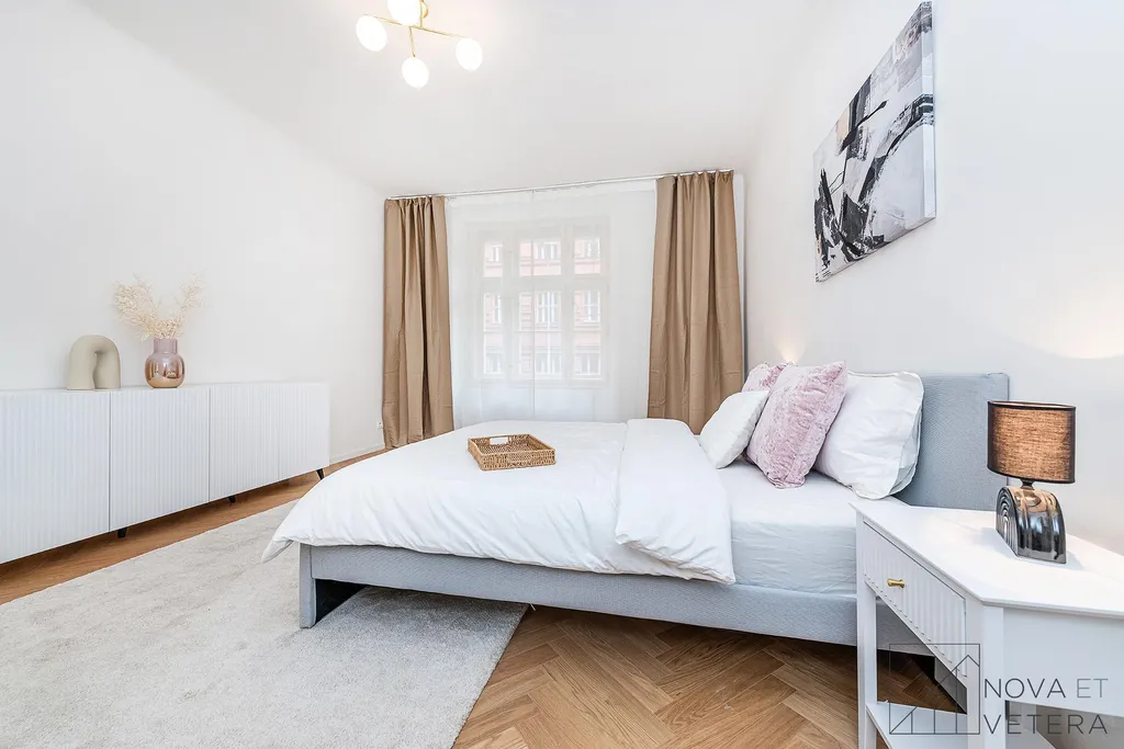 Byt právě prochází kompletní a kvalitní rekonstrukcí a bude připraven k nastěhování v červnu 2026. Rekonstrukce zahrnuje nové rozvody elektřiny, vody a odpadů, nové dřevěné podlahy, moderní obklady a dlažbu značky Marazzi, koupelnu se sprchovým koutem a sanitou Grohe a také novou kuchyňskou linku se spotřebiči prémiové značky Bosch, na kterou je poskytována prodloužená záruka 5 let.