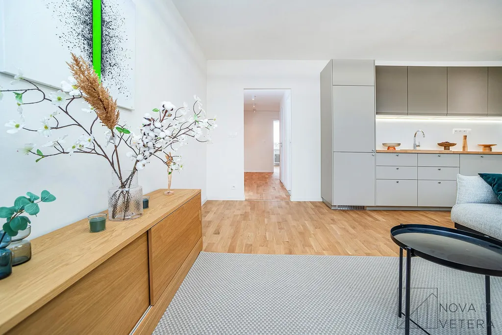 Byt právě prochází kompletní a kvalitní rekonstrukcí a bude připraven k nastěhování v červnu 2026. Rekonstrukce zahrnuje nové rozvody elektřiny, vody a odpadů, nové podlahy, moderní obklady a dlažbu značky Marazzi, koupelnu se sprchovým koutem a sanitou Grohe a také novou kuchyňskou linku se spotřebiči značky Gorenje, na kterou je poskytována prodloužená záruka 5 let.