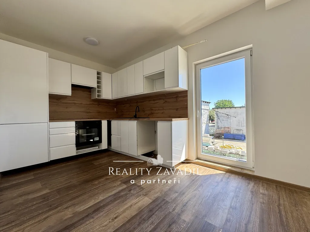 Prostorný obývací pokoj je propojen s novou, plně vybavenou kuchyňskou linkou. Kuchyně je zařízena moderními spotřebiči – lednicí, elektrickou troubou, myčkou a sklokeramickou varnou deskou. Tento prostor je ideální pro společenské setkání i každodenní relaxaci.
