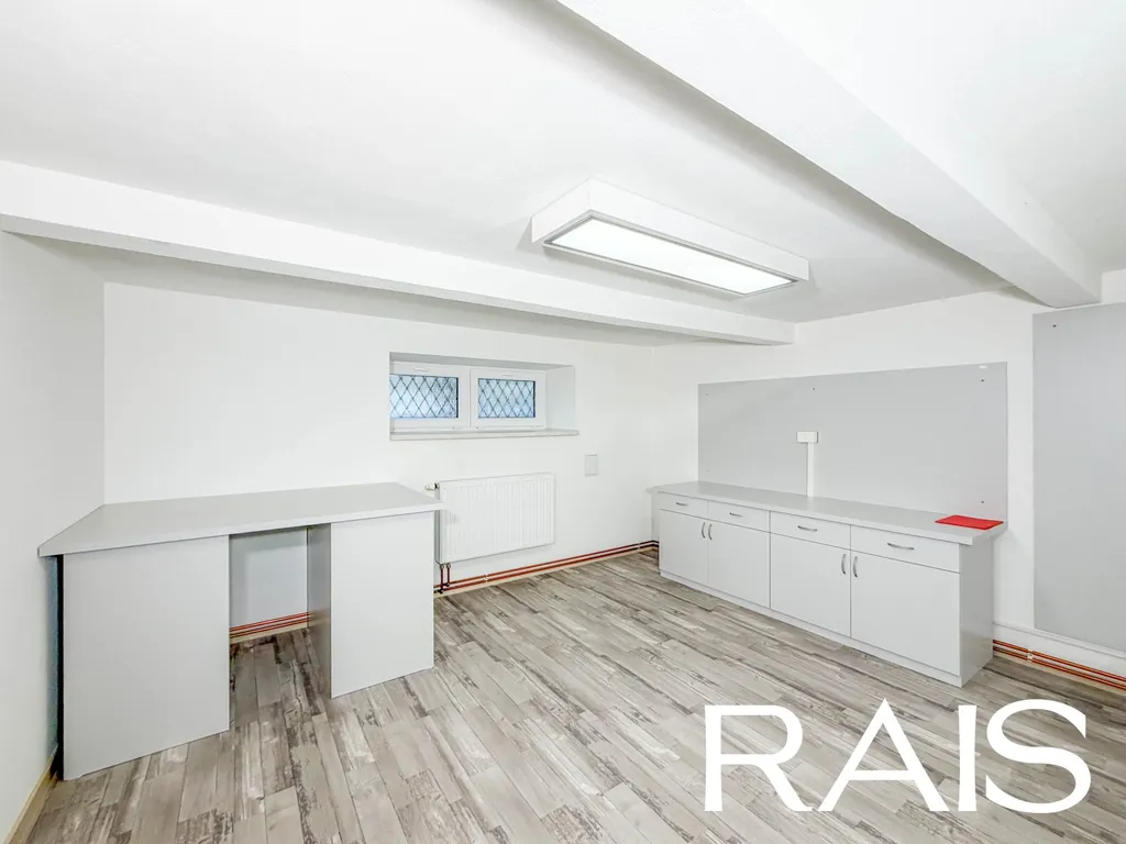 Suterén nabízí tři velké místnosti vhodné pro kanceláře, sklad, fitness, wellness, salon či jiné firemní nebo soukromé využití. Samostatná technická místnost může sloužit jako prádelna či sklad. Díky velikosti a dispozici poskytuje suterén široké možnosti využití podle individuálních potřeb.