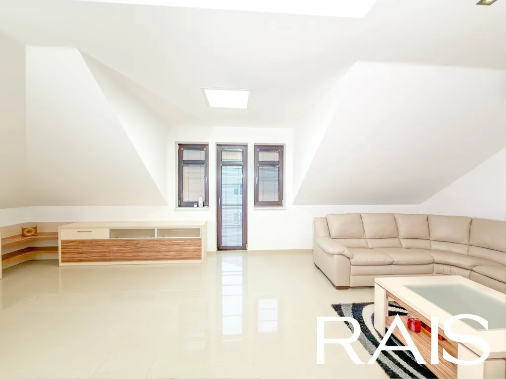 V patře se nachází samostatná bytová jednotka s moderní kuchyňkou, velkorysou koupelnou s rohovou vanou, sprchovým koutem a dvojitým umyvadlem, samostatnou toaletou a prostorným obývacím pokojem s balkónkem orientovaným do klidné ulice. Další pokoj lze využít jako ložnici či pracovnu, případně jej rozdělit na dvě místnosti. Připravena je instalace pro krb, který může interiéru dodat atmosféru i osobitý styl.