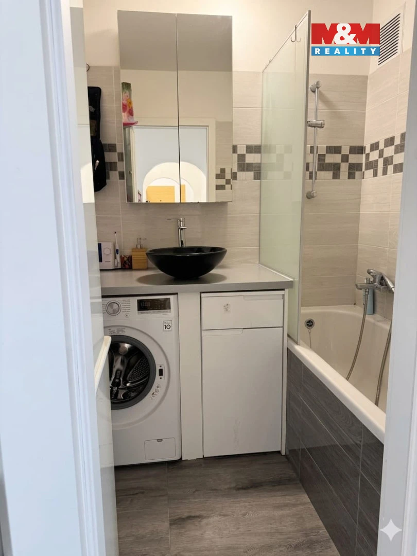 Byt je částečně zařízen – předsíňové skříně a úložné prostory, kuchyňská linka, koupelna včetně pračky se sušičkou, garnýže a závěsy, v ložnici konstrukce postele bez matrací.