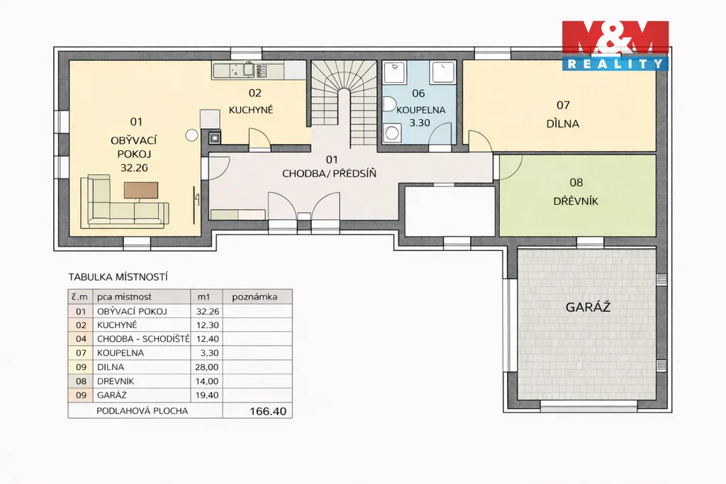 Jedná se o samostatně stojící nemovitost o 2 nadzemních podlažích, s prostornou garáží, dřevníkem, dílnou a menší zahrádkou za domem. Užitná plocha 196 m², pozemek 679 m².