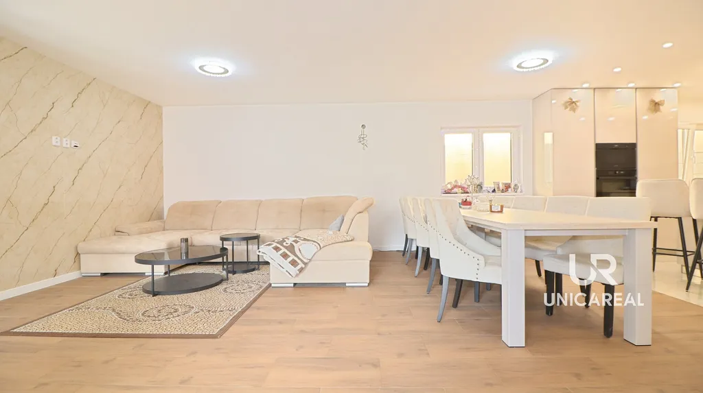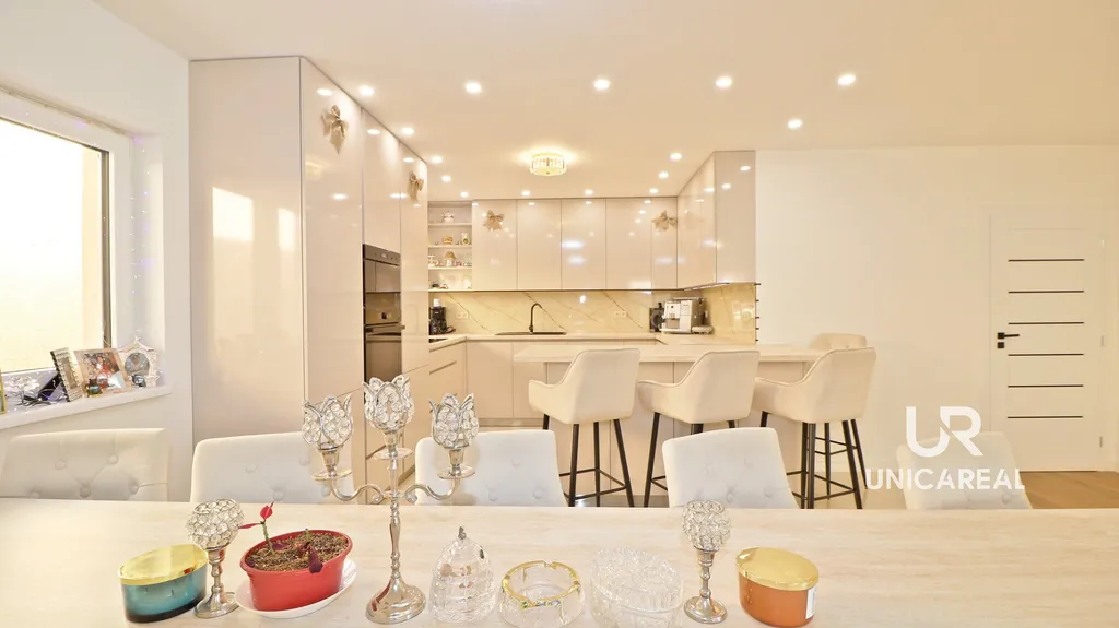 Interiér je již připraven k nastěhování včetně kompletně dokončené kuchyňské linky a k úplnému finále zbývá vydláždění terasy a dokončení fasády vč. úpravy okolí.