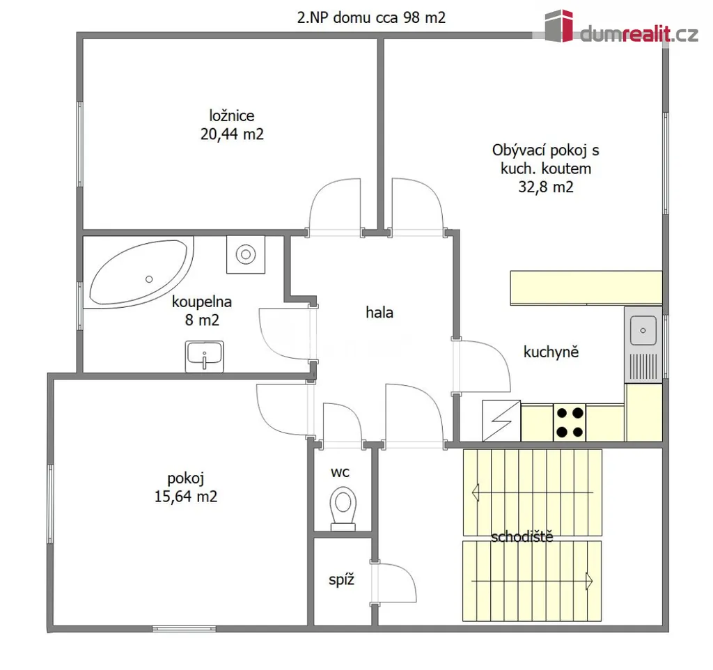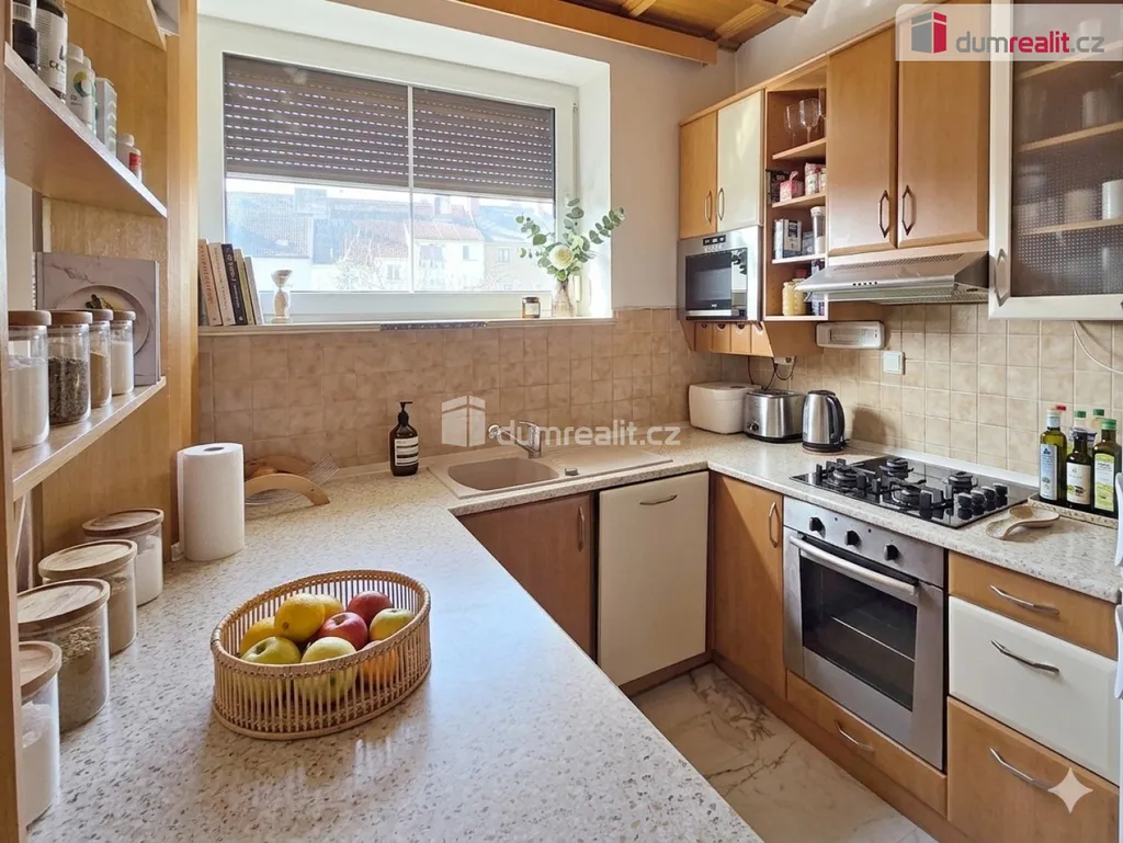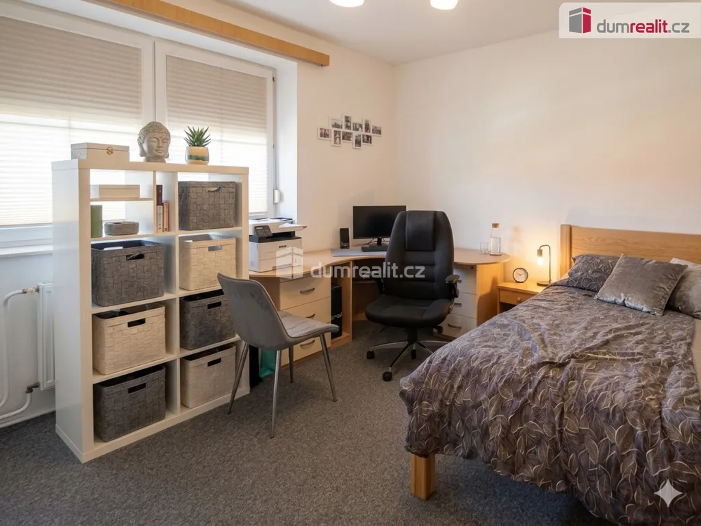 • Podkroví: Horní část tvoří příjemná denní místnost prosvětlená střešními okny a druhá koupelna s toaletou. Celý byt je přístupný po vnitřním schodišti.
