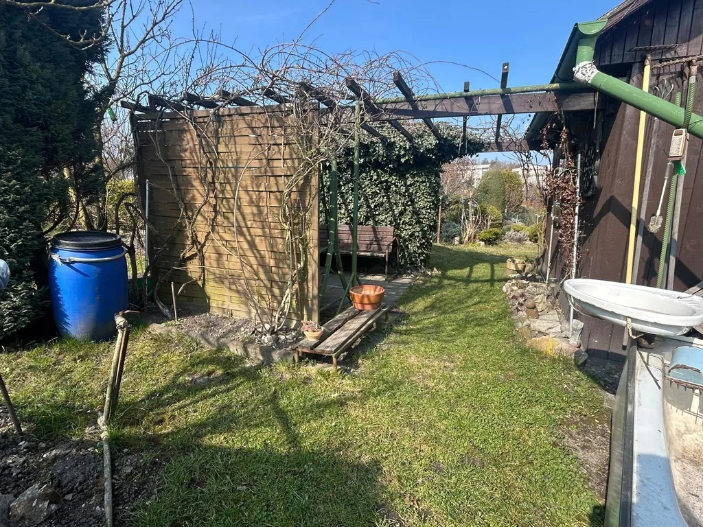 Zahrada je pečlivě udržovaná a nabízí příjemné prostředí pro rekreační využití i pěstování vlastního ovoce a zeleniny. Najdete zde plodící meruňku i vinnou révu, které dodávají místu příjemnou atmosféru a podtrhují jeho zahrádkářský charakter.