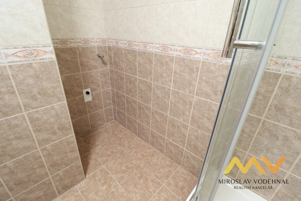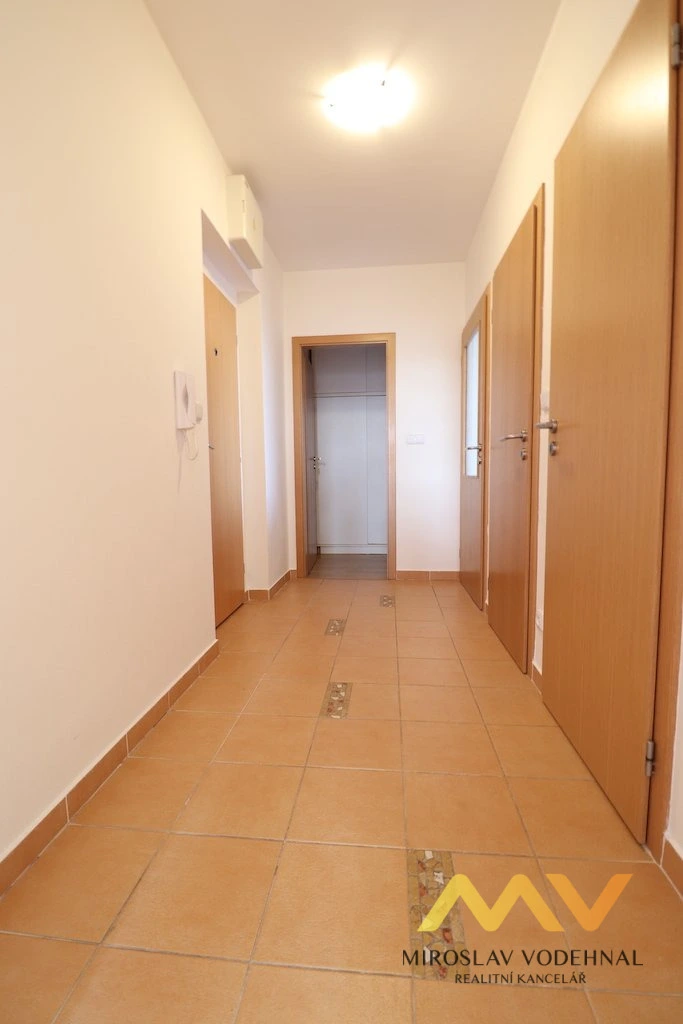 Ložnice působí klidným a vzdušným dojmem. Koupelna je vybavena sprchovým koutem, toaleta je oddělena. V předsíni se nachází další komora se šatní skříní, která významně zvyšuje uživatelský komfort bytu. Jednotka je nabízena nezařízená, což umožňuje novému nájemci přizpůsobit si interiér dle vlastního vkusu.