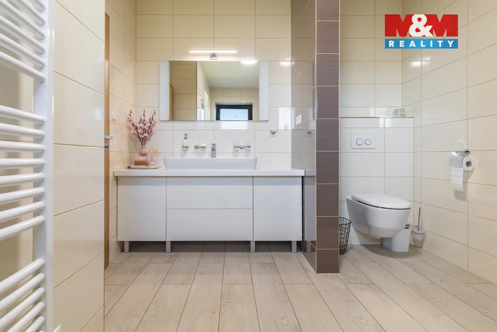 Nabízíme Vám k prodeji rodinný dům o dispozici 5+kk o celkové užitné ploše 190 m2 na klidném místě obce Jistebník s celkovou výměrou pozemku 1989 m2. Z prostorné chodby jsou vstupy do samostatných dvou dětských pokojů, ložnice, technické místnosti a dvou koupelen s WC. Dále přes křídlové dveře se dostanete do společného prostoru obývacího, jídelního, kuchyňského a relaxačního prostoru s krbem s teplovzdušnou vložkou. Tady je výstup na terasu, orientovanou na jižní stranu, spolu s letním obývacím pokojem. Dům je napojen na obecní vodovod, přes čističku odpadních vod na obecní kanalizaci. Podlahové vytápění a ohřev vody zabezpečeno tepelným čerpadlem vzduch-voda, PENB "A". K dispozici prostorná garáž s úložným prostorem. Náš hypoteční specialista Vám nabídne nejvhodnější financování této výjimečné nemovitosti.