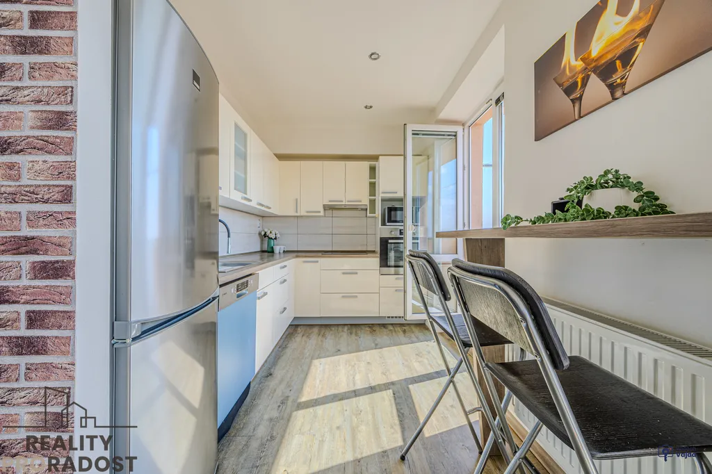 - byt je po kompletní rekonstrukci, která proběhla před 8 lety – nové jádro včetně sanity, závěsné WC, elektřina je v mědi, kuchyňská linka na míru, omítky, zárubně do pokojů a interiérové dveře...V koupelně jsou luxfery, takže je zde dost světla i bez svícení.