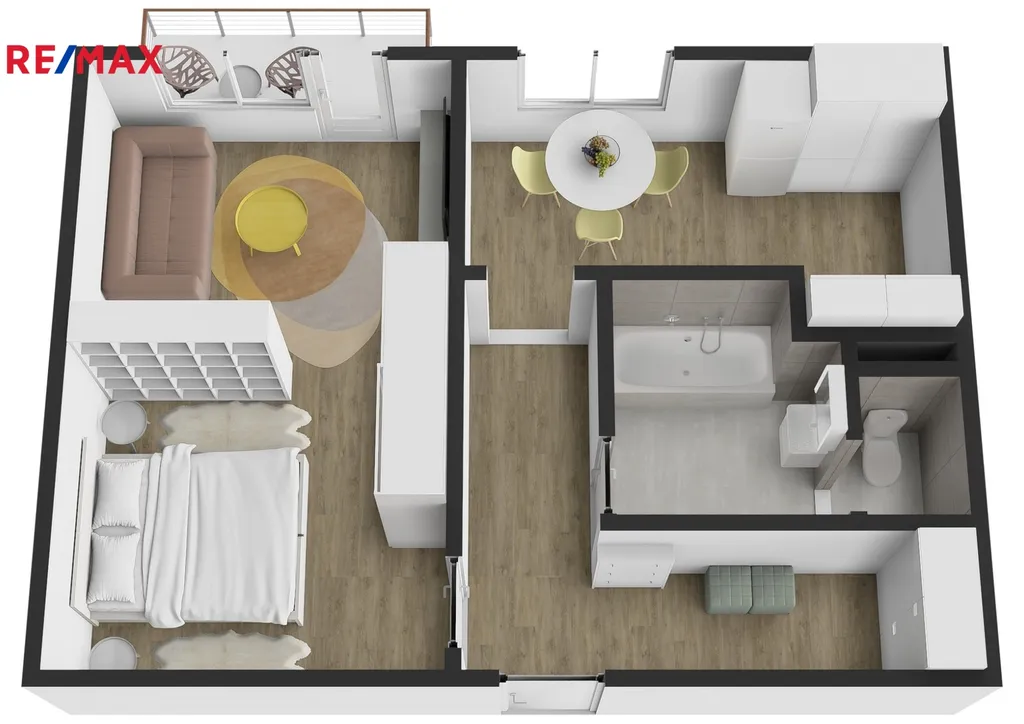 • Obývací pokoj: 20 m², se vstupem na balkón (4 m²)