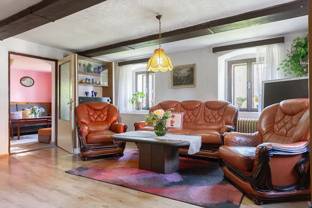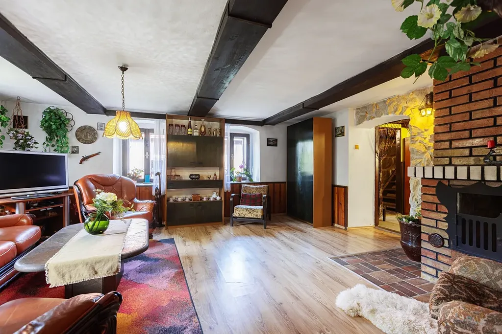 Hlavní rekonstrukce domu probíhaly mezi lety 1985 - 1995, kdy došlo k výměně střechy vč. krovů, odkopání domu, výměnám oken či novým omítkám. Dům není bez investic, ale je plně funkčním zázemím k trvalému bydlení s nesporným kouzlem. Ve dvou podlažích nabízí 185 m2 plochy, kterou tvoří obývák se samostatnou kuchyní a 4 ložnice s jednou koupelnou. Dům je vybaven ústředním topením na tuhá paliva, krb v obýváku je nyní nefunkční.