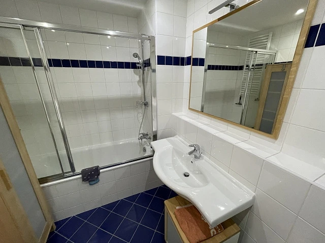 Bydlete v bytě s moderním vybavením interiéru. Kompletně zařízená kuchyně se sklo-keramickou deskou, trouba na pečení, lednice s mrazákem, myčka nádobí. Pokoje mají na poldaze dřevěnou a lakovanou krytinu. V chodbě bytu je vestavěná skříň. Koupelna s vanou, dále pračka prádla. Ohledně topení bytu, byt má vlastní plynový kombinovaný kotek, pro topení a ohřev vody; to si řídíte podle svých požadavků.K bytu patří sklep, pro Vaše další věci. Také garážové stání, pro Vaše auto.