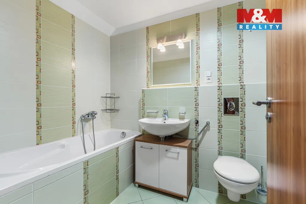 Interiér nabízí kvalitní dřevěné podlahy, vestavěné skříně v každém pokoji a klimatizace ve dvou obytných místnostech. Praktickým benefitem jsou dvě koupelny – v každém patře je jedna.