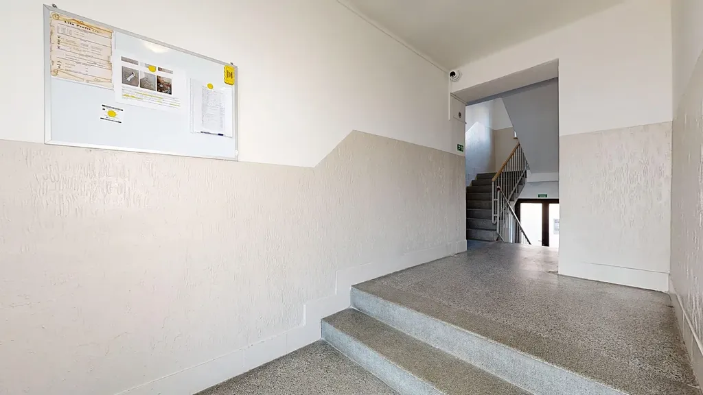 Byt je situován ve 4. patře bez výtahu, zajišťuje dostatek klidu a soukromí. Velkou výhodou jsou dva balkony, které poskytují příjemný prostor k relaxaci a zároveň dostatek denního světla po celý den.