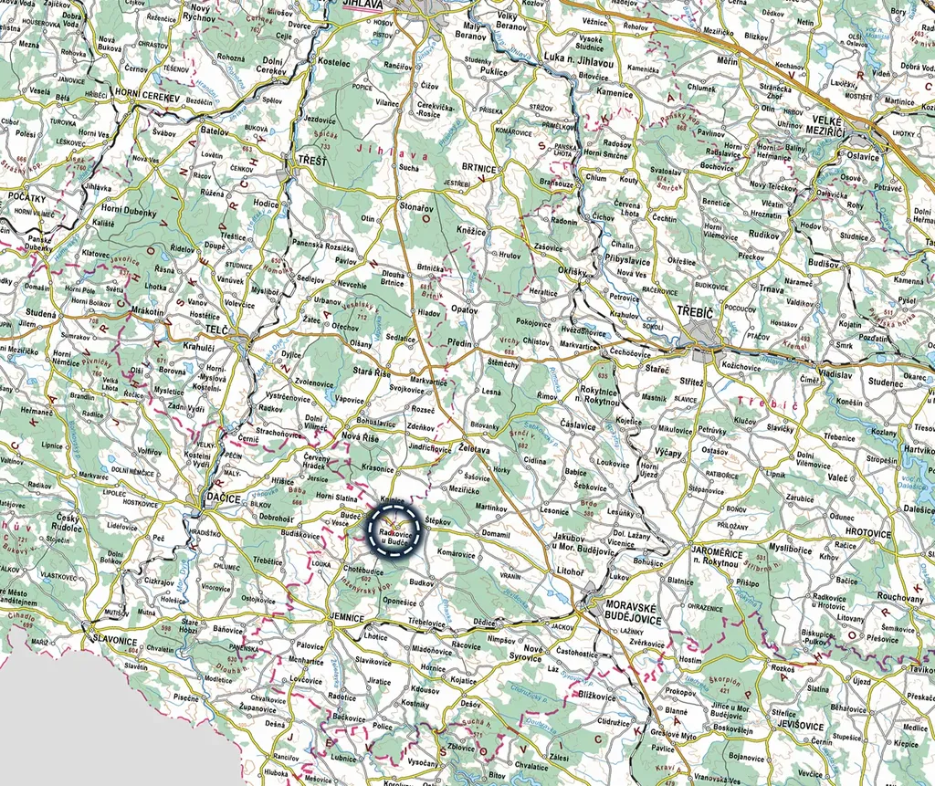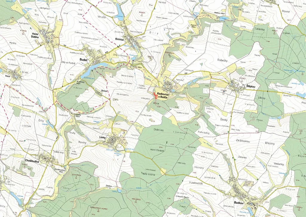 Katastrální území Radkovice u Budče, celková výměra 6 873 m2