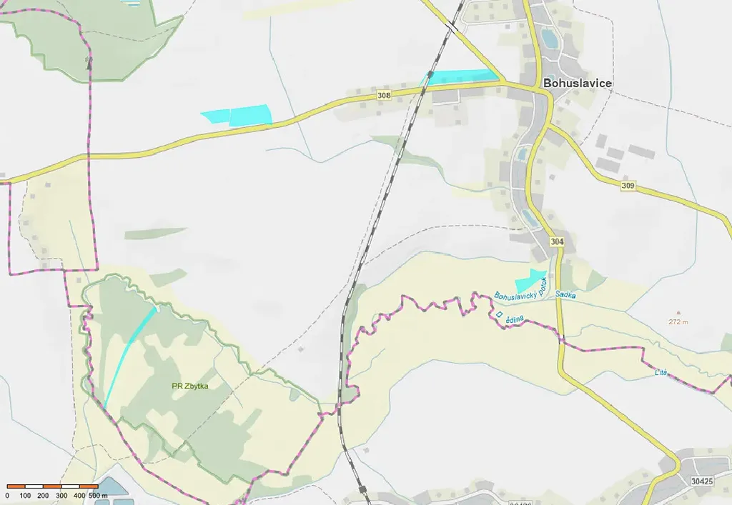 Parcely číslo 920/78, 1023/63, 1023/64, 1045/18, 1050/53, 1050/54, 1050/55, 1066/19, 1084/1, 1084/2, 1426/2, 2364/6, 2380, 2420, 2421/1 vedené v katastrálním území Bohuslavice nad Metují jsou vedeny na listu vlastnictví číslo 125 a mají společnou výměru 67.997 m2.