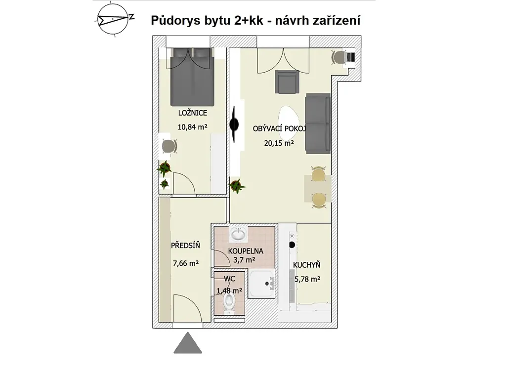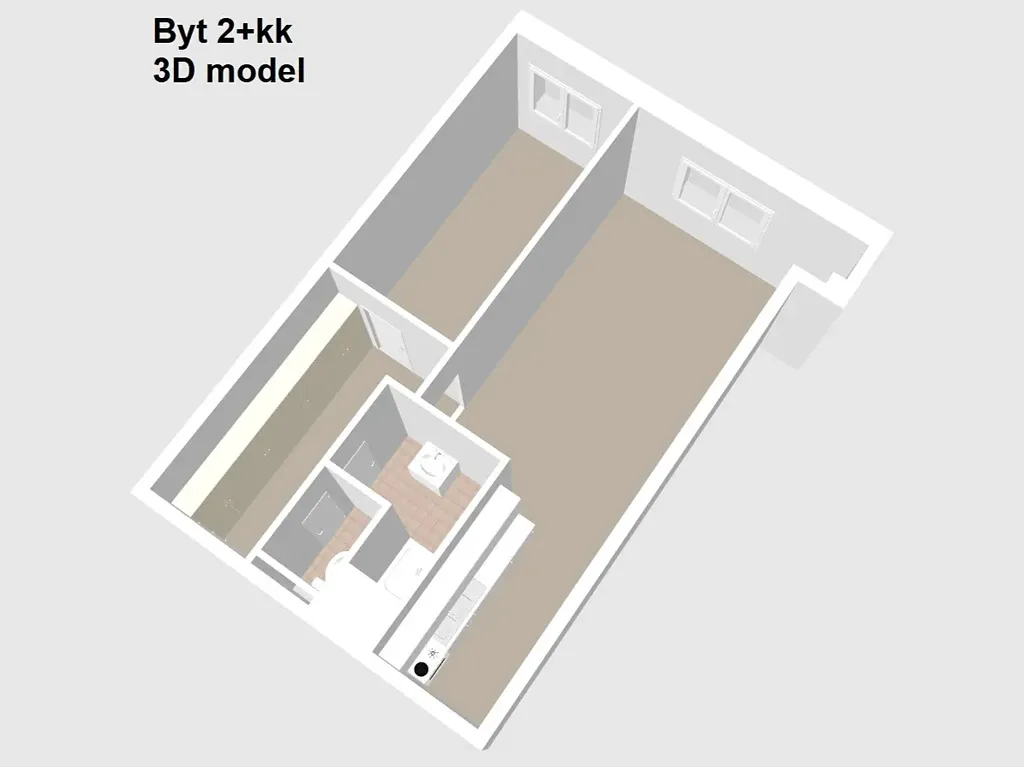 BYT 2+kk má plochu 50 m2 a nachází se v 1. NP. (přízemí) bytového domu. Orientace oken je na západ. Byt je v dobrém stavu s možností okamžitého bydlení či pronajmutí. V bytě může zůstat částečné vybavení.