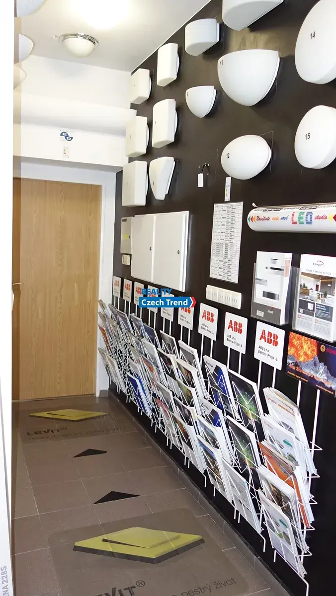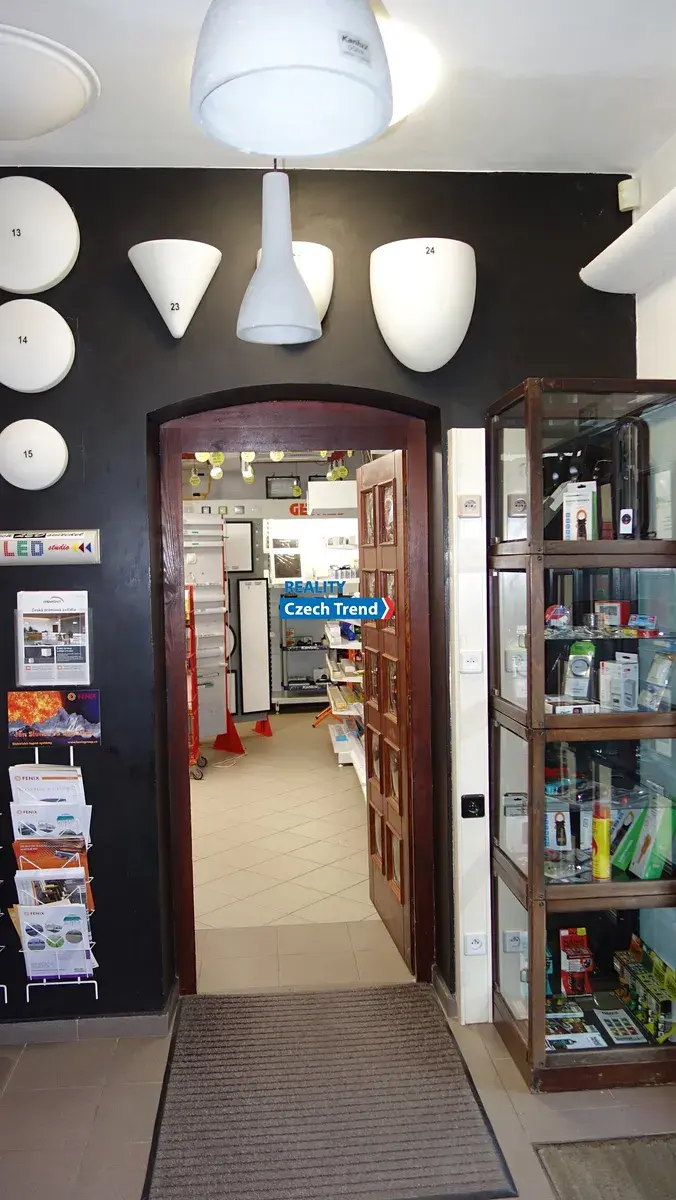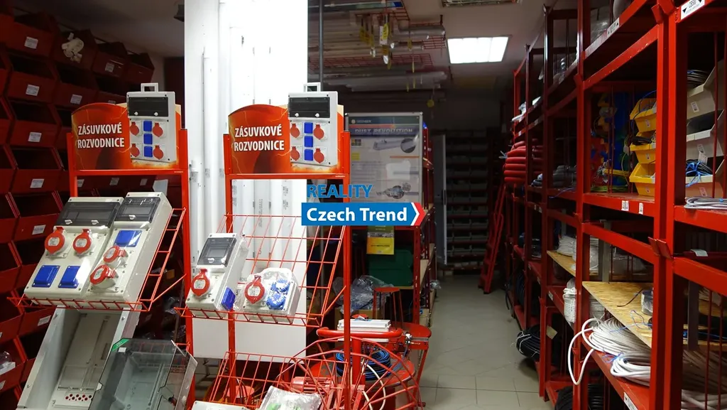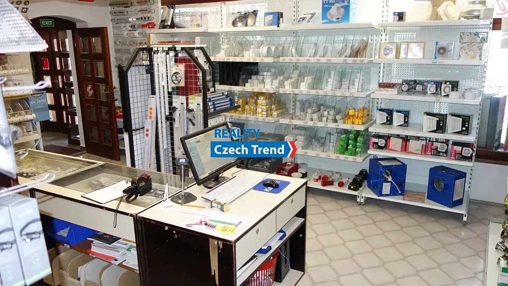 V přízemí jsou prodejní prostory, malá kancelář, sklad a garáž. V 1. patře jsou 1. větší a jedna menší kancelář, sklad, kuchyňka a soc. zařízení . Ve 3. patře se nachází skladovací prostor a strojovna výtahu. Budova je vytápěna třemi druhy topení - plyn, elektřina, klimatizace a je napojena na kanalizaci a vodovod + vlastní studna. Prostor lze po dohodě pronajmout i po částech.