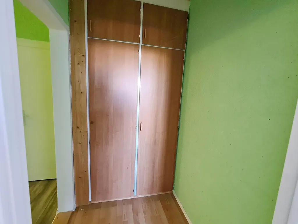 Byt se skládá z prostorné chodby, kuchyně, koupelny s vanou, samostatného WC, obývacího pokoje, průchozí šatny a ložnice. Mimo šatnu jsou všechny místnosti neprůchozí. Orientace je na západ a východ. Na podlahách je laminát, PVC a ker. dlažba v koupelně a WC. V kuchyni je k dispozici kombinovaný sporák. Vytápění a ohřev vody jsou ústřední dálkové. Součástí pronájmu je také sklepní kóje. Parkovat lze na veřejné ulici před domem.