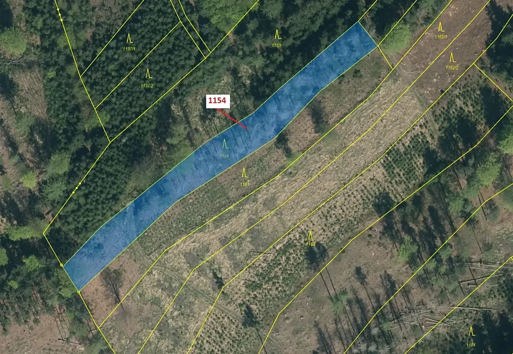 Lesní pozemek o výměře 2384 m2, parcelní číslo 1154, podíl 1/1, katastrální území Vilice, obec Vilice, obec s rozšířenou působností Tábor, okres Tábor, Jihočeský kraj. Po těžbě.
