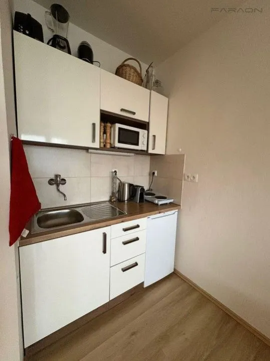 Byt je vybavený zánovní kuchyňskou linkou s ledničkou a mikrovlnnou troubou.