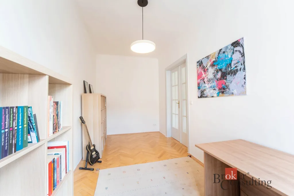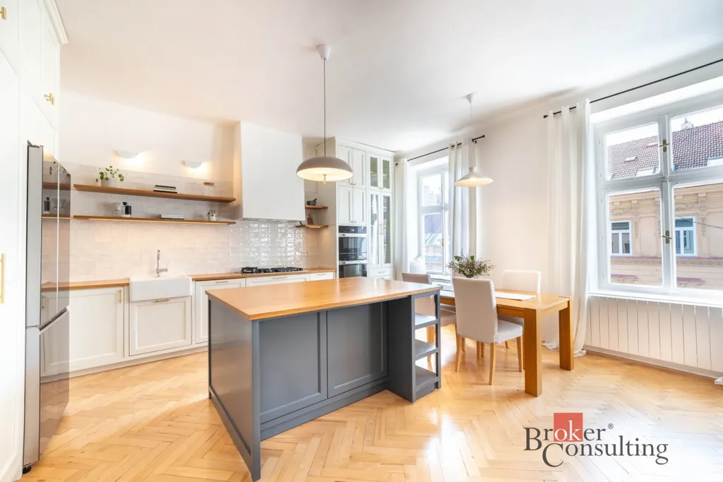 Nabízíme k prodeji exkluzivní, kompletně zrekonstruovaný a klimatizovaný byt o dispozici 4+kk s celkovou výměrou 115 m² a terasou o velikosti 10 m², situovaný v centru Brna. Nemovitost zaujme především svou mimořádnou světlostí, vzdušností a krásně sladěným interiérem, který propojuje moderní prvky s nadčasovou elegancí.