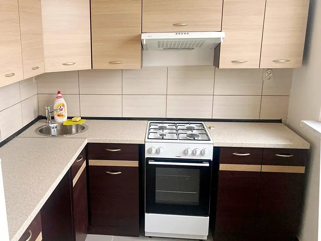 Byt je ve velice dobrém stavu a umožňuje pohodlné a klidné bydlení. Před nedávnem bylo kompletně rekonstruováno bytové jádro a položena dlažba v předsíni a kuchyni. V kuchyni byla dále namontována nová kuchyňská linka. Oba obytné pokoje jsou velké a mají orientaci oken, stejně jako kuchyně, k západu. K dispozici je také balkón. Byt je také částečně vybaven – v kuchyni je zánovní kombinovaná lednice s mrazákem, pračka, skříň, v obýváku je sedací souprava. Další vybavení na fotografiích je ve vlastnictví stávajícího nájemce, který je připraven projednat jejich ponechání v bytě.
