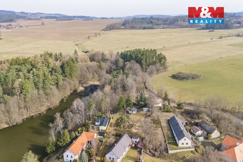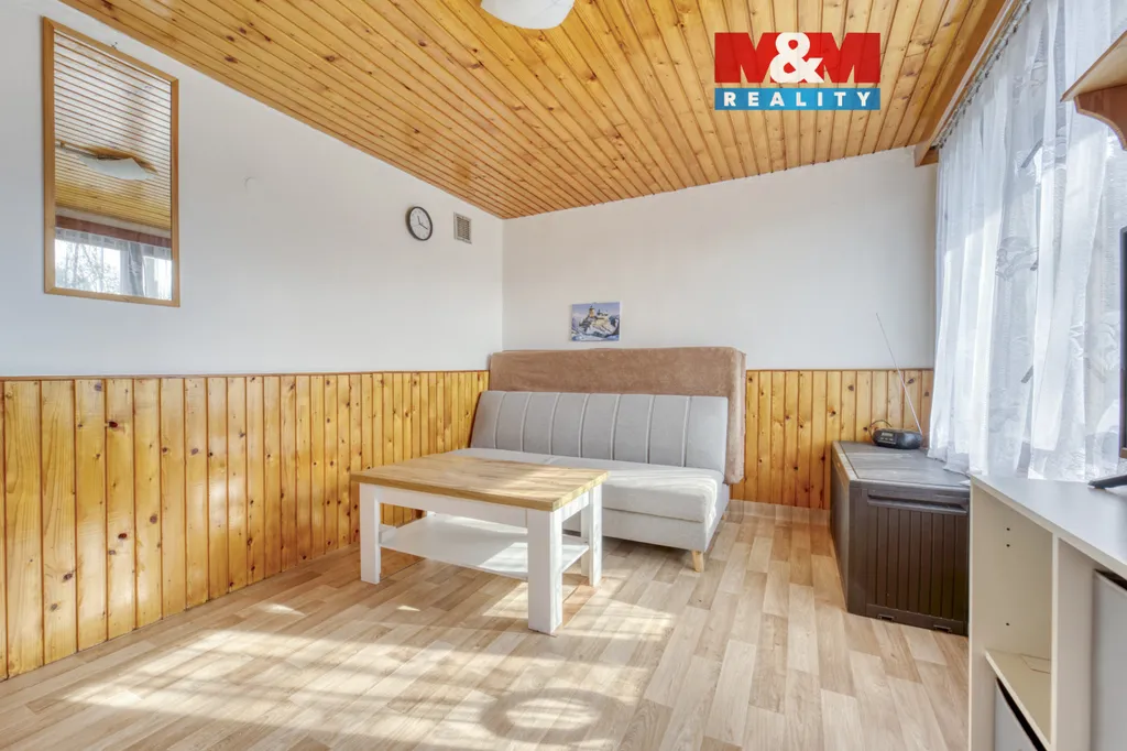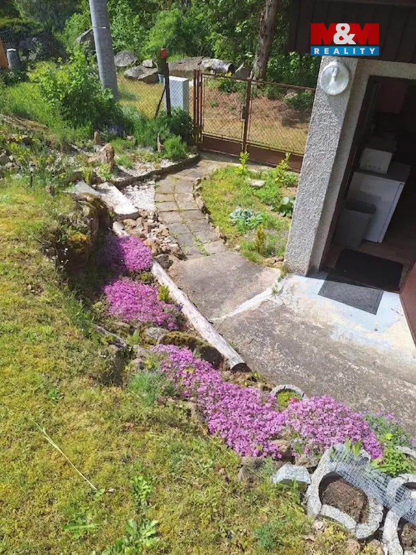 Zděná chata o zastavěné ploše 17m² včetně vybavení na pozemku 398 m² na klidné polosamotě s krásným výhledem – Těchonice u Nalžovských Hor. Vyvýšený pozemek poskytuje dostatek soukromí.